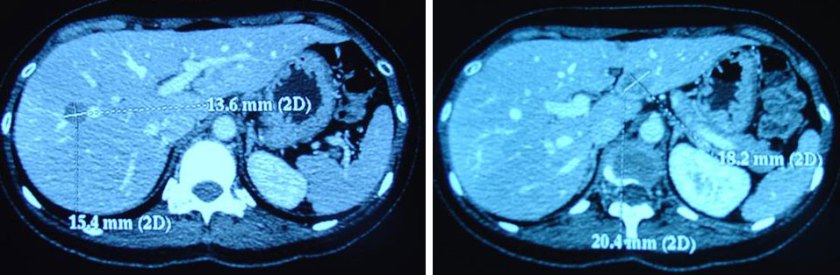 She suffered headaches, nausea and had very low blood pressure. Fransiska went back to her oncologist in August 2008. A scan showed the cancer had spread to her brain. A CT scan of the abdomen showed:
