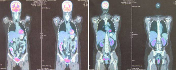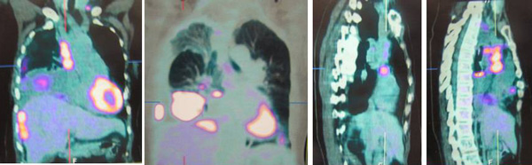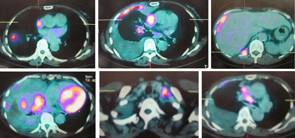 A bone scan done on 29 January 2009 indicated multiple skeletal metastases in the sternum and two ribs on the left side.
