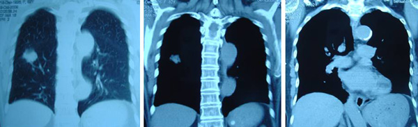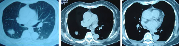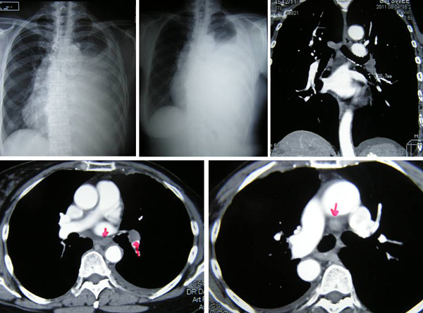 SH said she was well all these years and her progress was monitored by her doctor. About 10 years later, in early 2009, SH developed shortness of breath. She could not lift her left arm. She was tired and lost her appetite. A chest X-ray indicated large left pleural effusion. SH had the fluid in her lung tapped out. A CT scan on 7 January 2009 indicated several subcentimeter nodules in her left lung. The lymph nodes in the left axilla and aortopulmonary window were enlarged. Impression: left pulmonary and pleural metastasis.