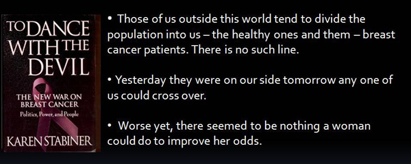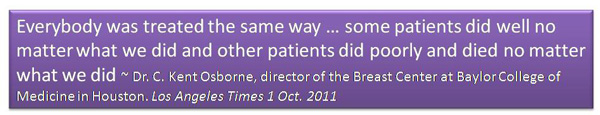 Why did you take tamoxifen? To prevent recurrence, so you are told. Some patients are also often told this – if you survive 5 years, you are cured of your cancer! What a great lie. Did tamoxifen cure cancer in this case? It must have since his patient had survived for 5 years. That, “medically” is defined as a cure. But, you never ask – what if she does not take tamoxifen? She may also survive 5 years! Anyway the cancer came back after 10 years. This time it struck the lungs and the bones. Where then is the so called cure?