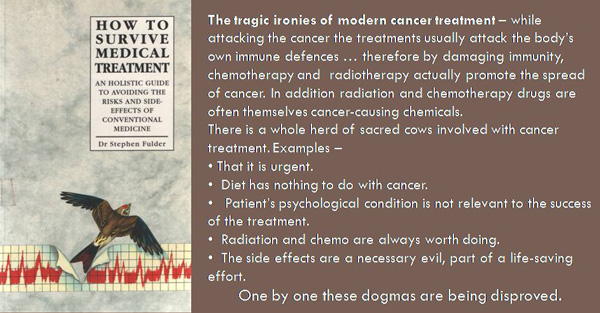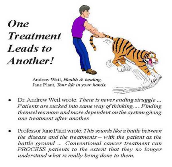 Based on his medical history and failed medical treatment, I told Tag’s wife to learn how to accept and face reality. There would be no cure. And for him to come to Penang and check into a hospital trying to reduce his leucocytes count was surely mind boggling! He was barking at the wrong tree! Perhaps this is what Professor Jane Plant meant when she wrote, Conventional cancer treatment can process patients to the extent that they no longer understand what is really being done to them. They have lost the ability to think rationally! They come wanting to only hear that they can be cured.