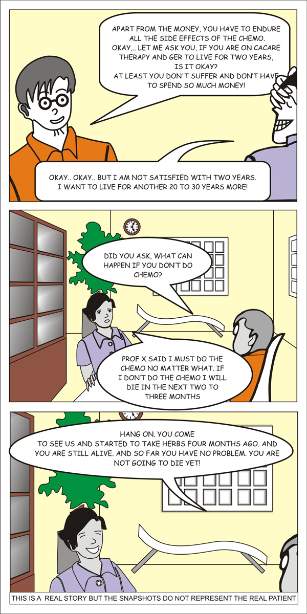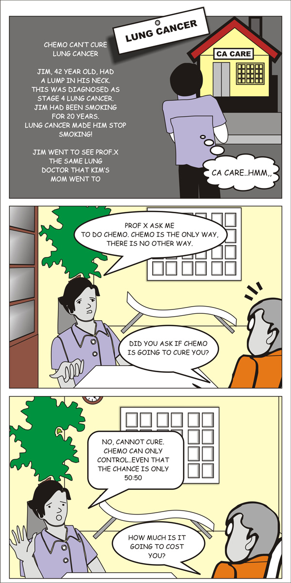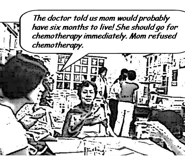 However, after having surgery and 8 sessions of chemotherapy, Sun Hee declined her oncologist’s suggestion to undergo another 12 additional maintenance chemotherapy treatments…”to keep the cancer from re-growing.” The oncologist did admit that…”eventually the cancer would come back even if more chemo was used.” When Sun Hee pressed what would come after the maintenance chemotherapy, the oncologist then indicated that they would keep giving chemotherapy until the body could no longer take it.