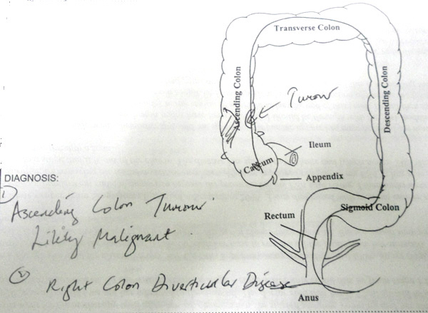 KL is a 60-year old female. She felt tired and was told that she was anemic. However, a colonoscopy done on 25 March 2014 indicated tumours in her ascending colon.