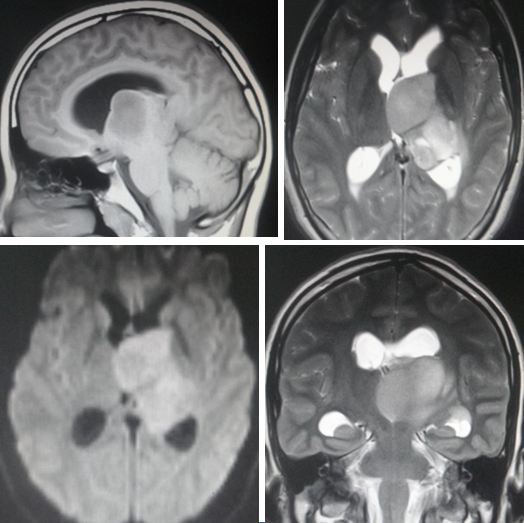 Z is a 16 plus years old girl. For the past 10 years or so, she had been having sinus problems and had been on doctor’s medication. About two months ago, August 2016, she became dizzy and had pain when moving her head. She also vomited a lot. A CT scan and MRI done showed a 35 x 30 x 30 mm enhancing mass in the region of third ventricle, at or near the left foramen of Monro.