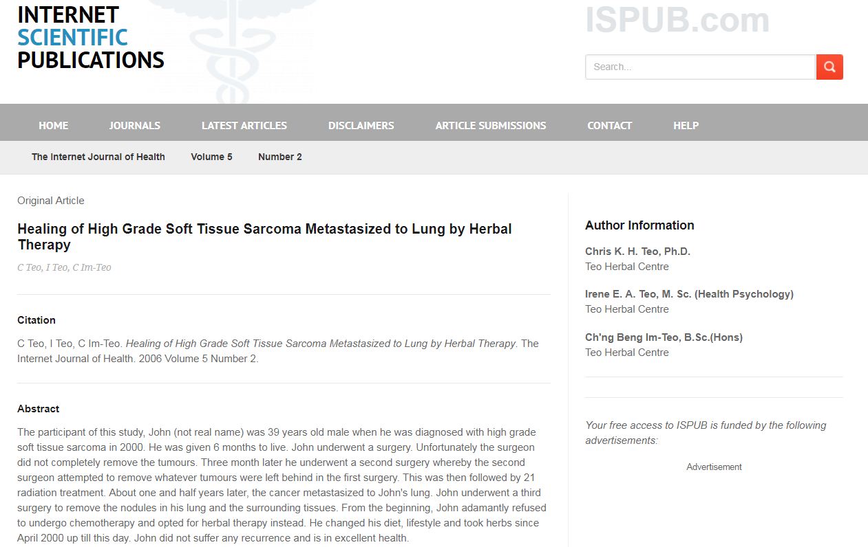 Personally I was really disappointed after hearing this story. When I started CA Care more than twenty years ago, I learned and read a lot about TCM from the Chinese. My experience showed me that the traditional wisdom of healing can help cancer patients. And up to this day, I know I am still not wrong!
