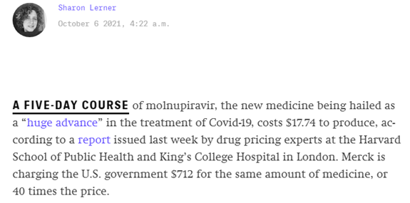 Merck Sells Federally Financed Covid Pill to U.S. for 40 Times What It Costs to Make