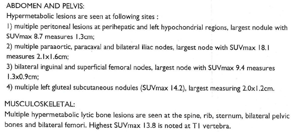 6:46 PM. M: Doctor said lymphoma stage 4. Spread to brain, sinus and lungs. Other parts of body not sure, need further checking.