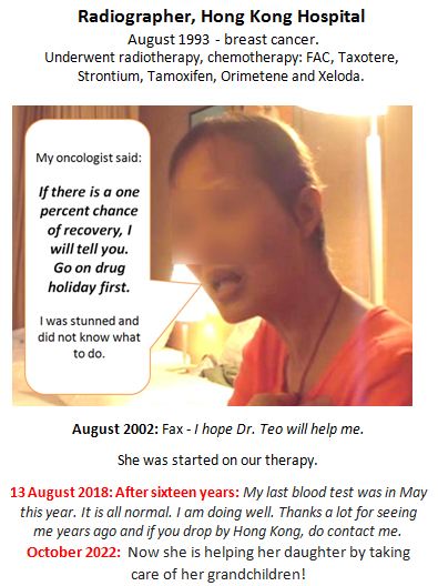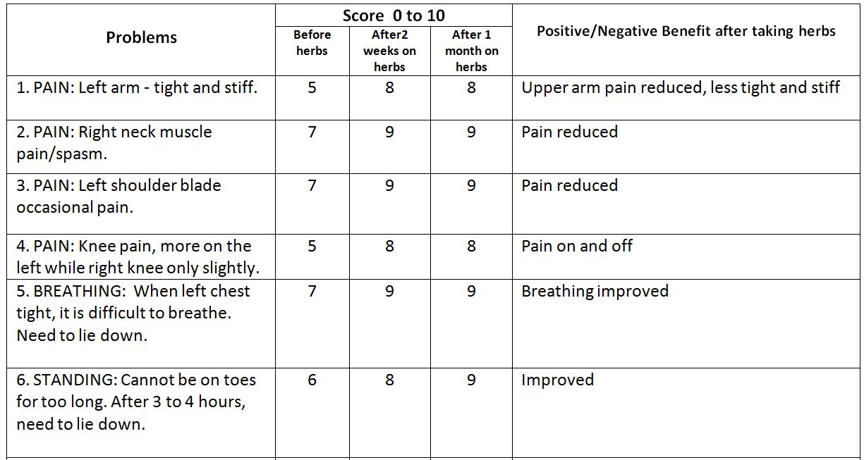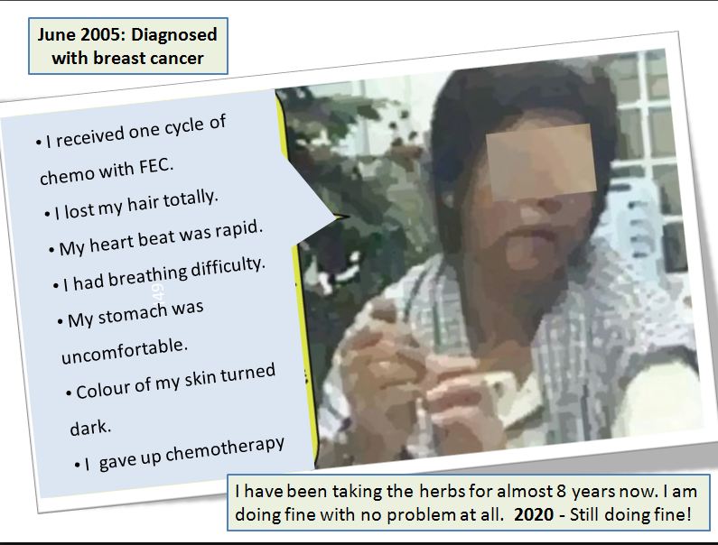 Our herbs would not be able to cure her son’s lymphoma. However, since she still wanted to try our therapy, I prescribed herbs for two weeks and we shall monitor the progress. If the herbs do not help her son, then he should stop taking our herbs and go to the oncologist for help.