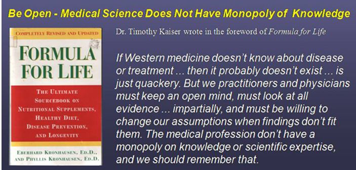 - Some patients come to us with the belief that doctors use scientific, proven method to cure cancer. Other methods are just hocus pocus, not scientifically proven, etc. I can only say this – if you know enough science you will know that the accepted dogma of follow the science could just be a “bias” representation of the truth.