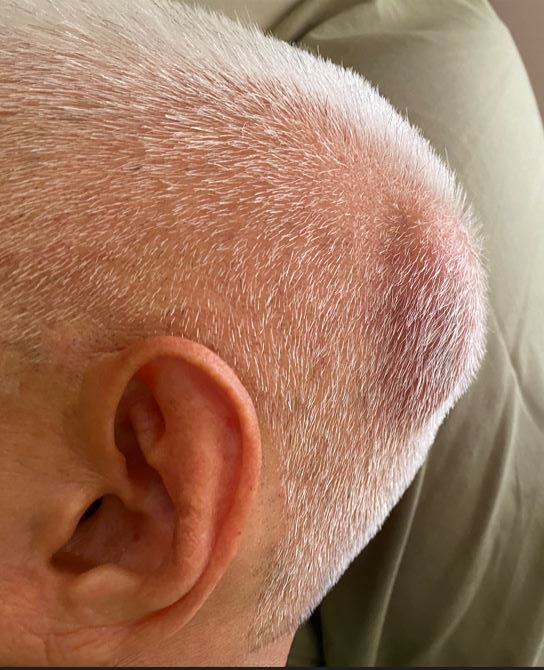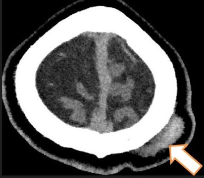 Left parietal scalp swelling.