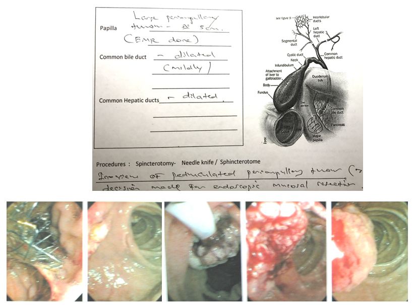 LY underwent an Endoscopic Mucosal Resection (EMR) and pathology report confirmed a Grade 2 adenocarcinoma of the periampullary region.