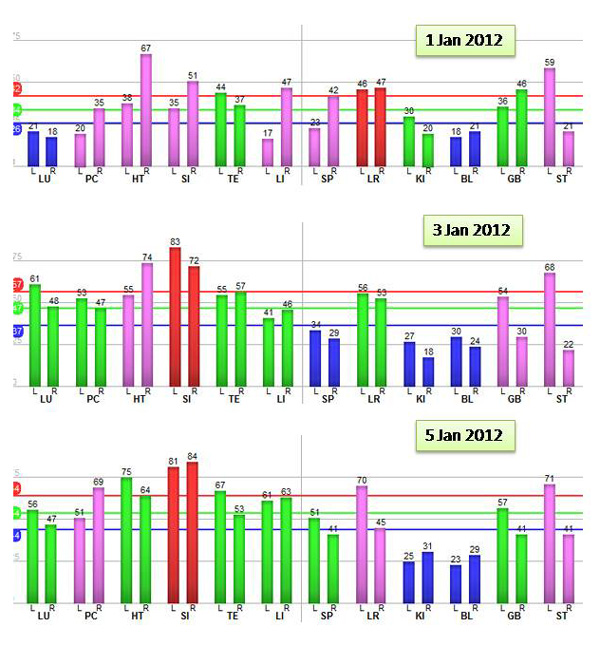 Pain # 65, 80 and 89. No pain and had good sleep during the therapy. Had mild pain at 1 p.m., 3 p.m. and 4.30 p.m. Duration of pain decreased.