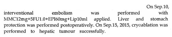 Chai was asked to undergo transarterial chemoembolization (TACE) for his recurrent liver cancer. He refused to undergo this treatment and came to seek our help instead.