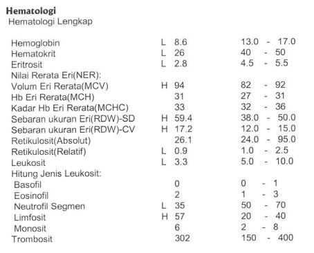 - In April 2019, He had fevers again. He went to Rumah Sakit Medistra and did a blood test. The result showed low hemoglobin level.