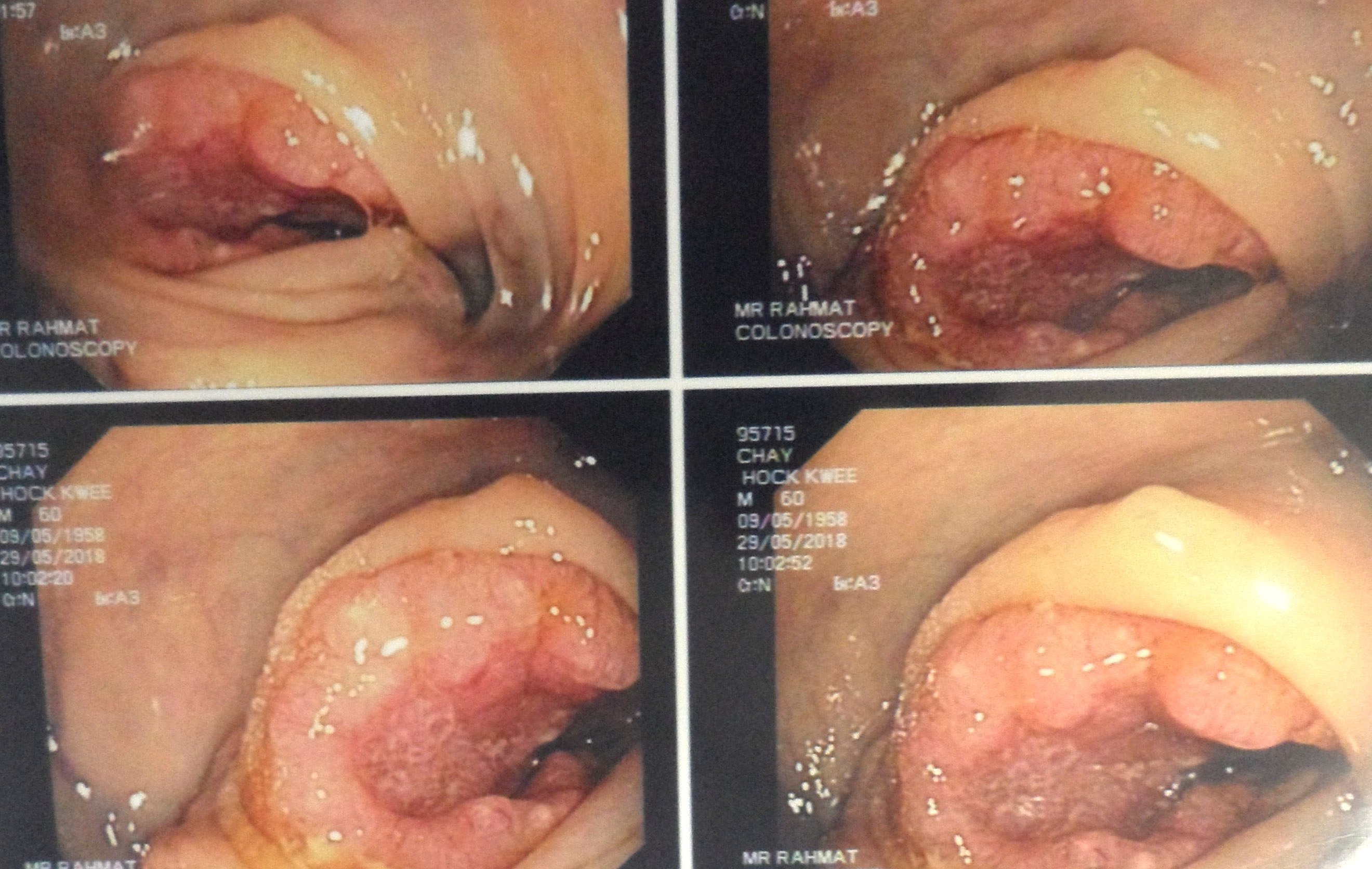 On 29 May 2018, CHK went back to the hospital again for a colonoscopy. There was a tumour in his colon and 85 percent of the passageway was blocked.  A biopsy confirmed adenocarcinoma of the ascending colon.