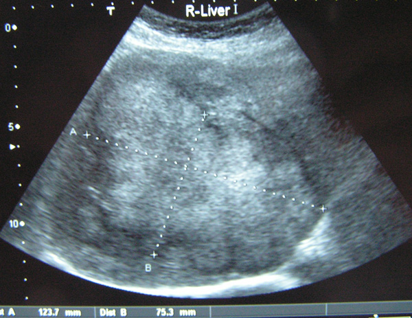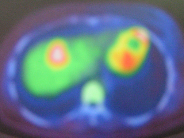 A CT scan in May 2014 showed more nodules in her liver (pictures below). The cancer had also spread to her bone. Amy received bonefos injection for her bone metastasis.