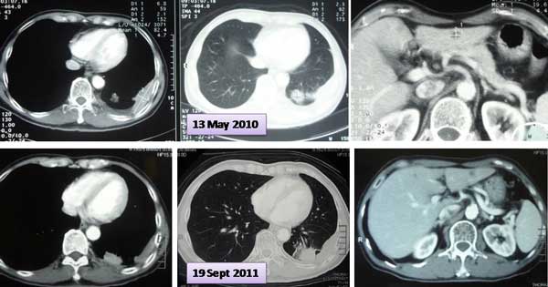 The progress of FY’s treatment was monitored by scanning and blood tests.