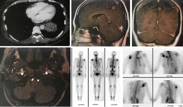 - patchy sclerosis of body of T1 vertebrae suggestive of metastasis.