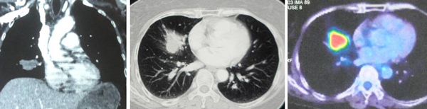 - irregular metabolic active mass (3.2 cm) seen in the apical segment of the lower lobe of left lung.